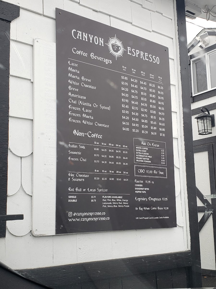 Canyon Espresso specializes in a diverse array of coffee and non-coffee beverages, capturing the hearts of both coffee aficionados and casual drinkers alike. Indulge in their signature White Chocolate Americano, expertly crafted with oat milk for a creamy, rich experience that keeps customers coming back for more. If you’re in the mood for something a bit more traditional, their mocha and breve options promise to tantalize your taste buds with every sip.